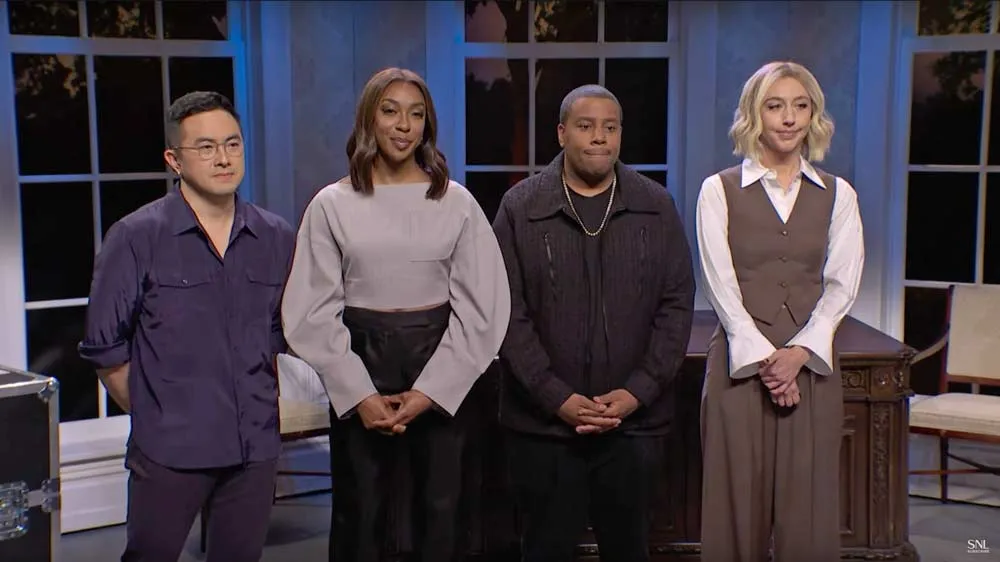 The episode, hosted by standup comic and actor Bill Burr, was the first all season that did not begin with former cast member Maya Rudolph, who played Vice President Kamala Harris in a giddy five-week run culminating with an appearance last week of Harris herself that began the show's 50th season and brought a ratings spike.